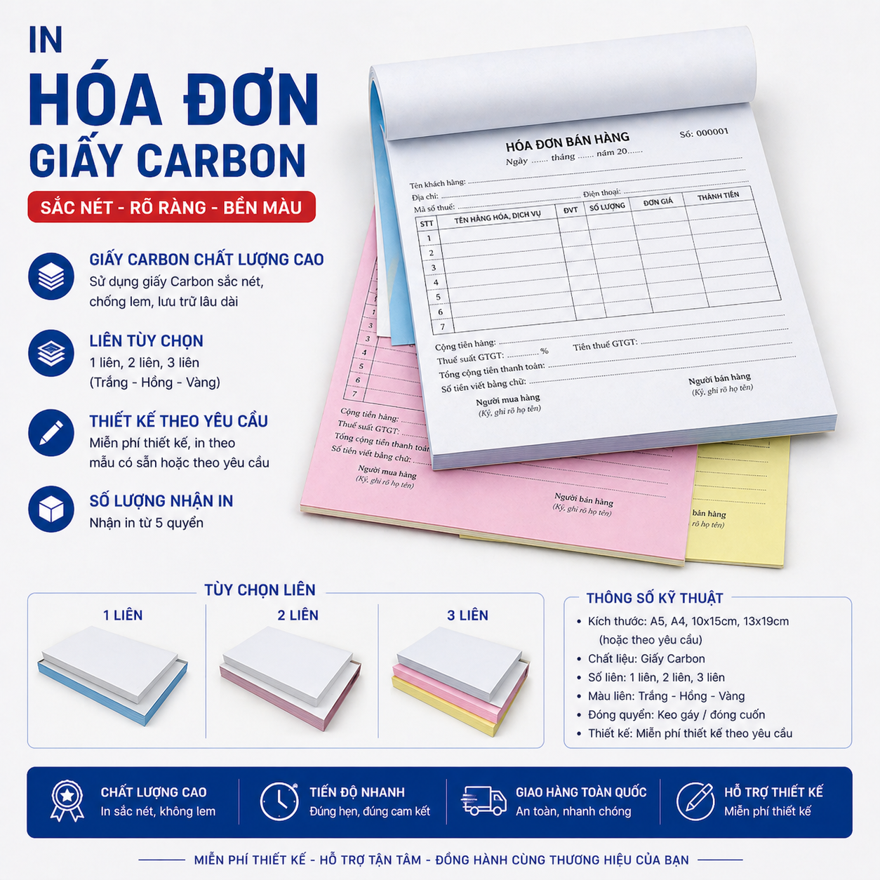 Báo giá in hóa đơn A5 – 14.8×21 cm – Giấy carbon 3 liên