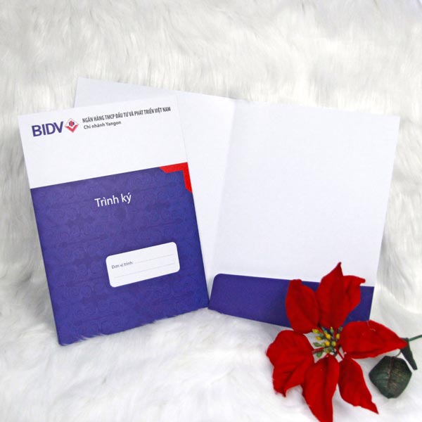 - Bìa ngoài in logo, tên công ty, hoặc các thông tin liên hệ.