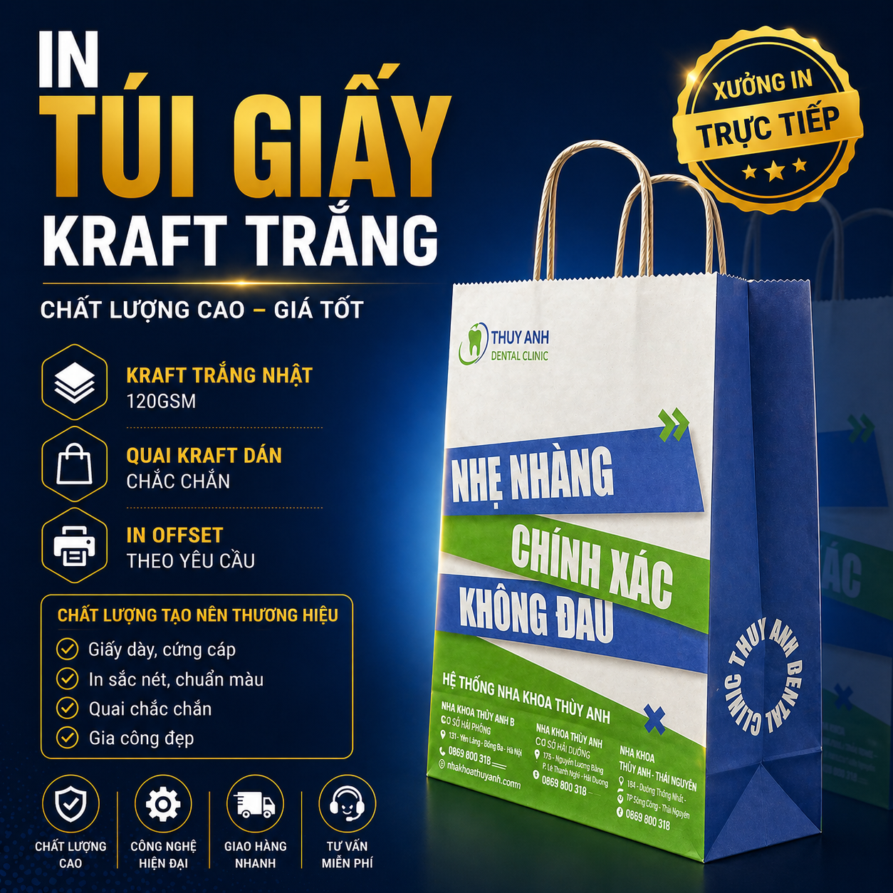 In Hoàng Gia là một trong những đơn vị in ấn hàng đầu tại Hà Nội, đặc biệt trong lĩnh vực in túi giấy Kraft trắng. Với nhiều năm kinh nghiệm, In Hoàng Gia đã xây dựng được uy tín và sự tin tưởng của nhiều doanh nghiệp. Dưới đây là những lý do mà khách hàng nên lựa chọn dịch vụ in túi giấy tại đây: